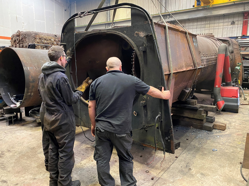 Removing WADEBRIDGE smokebox from the boiler, 14th September 2022.Photograph ©