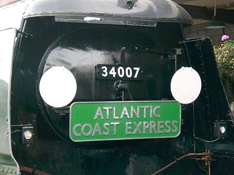 For the renaming ceremony train on 29th Ocober 2006 WADEBRIDGE carried the headboard of the Atlantic Coast Express, a train she hauled many times over the North Cornwall line.Photograph © Andrew Chalmers-Stevens.