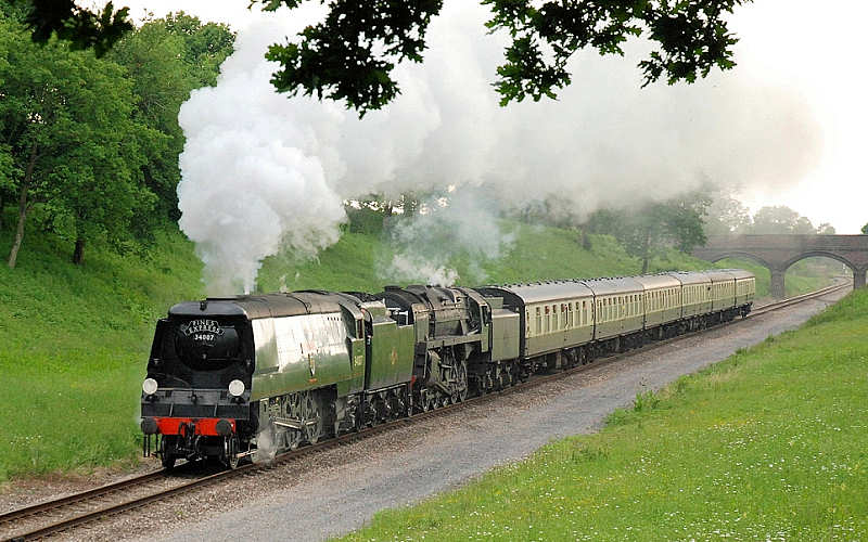 WADEBRIDGE double-heading with 9F Nº92203 on a recreation of the legendary "Pines Express".Photo by Stephen Leek.