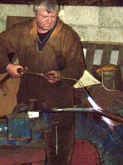 Dave Mitchell heating the vacuum ejector steam pipe prior to further bending.