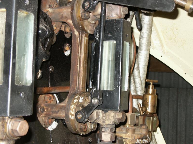 The gauge glass, showing the level of the water in the boiler.Photograph © Peter Richards.