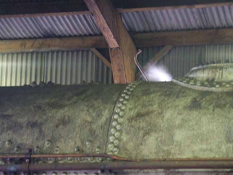 Steam escaping from one of the several small leaks that are only to be expected at this stage of the restoration.Photograph © Peter Richards.