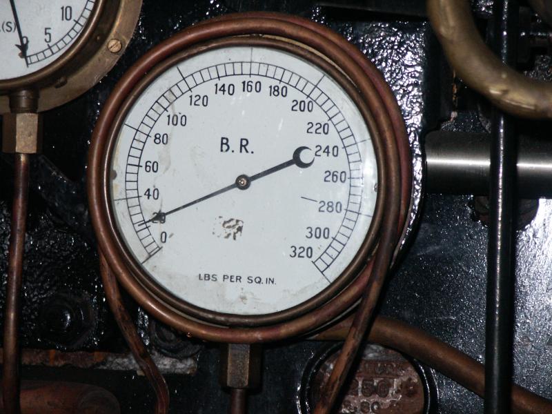 Dave Mitchell opened the regulator a little and for the first time in almost forty one years there was pressure in the steam chest.Photograph © Peter Richards.