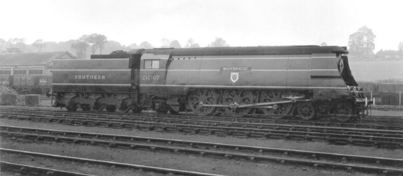 This interesting photograph of WADEBRIDGE was taken on 28 October 1945 at Exmouth Junction and was used by the Southern Railway (after masking the background) for the locomotive's official photograph. It is reproduced by permission of the R H & C H S Spence collection.