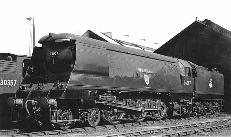 This photograph is reproduced by kind permission of the photographer, F A Wycherley.Wadebridge was on shed at Eastleigh, in apparently gleaming ex-works condition, on 2 June 1951.