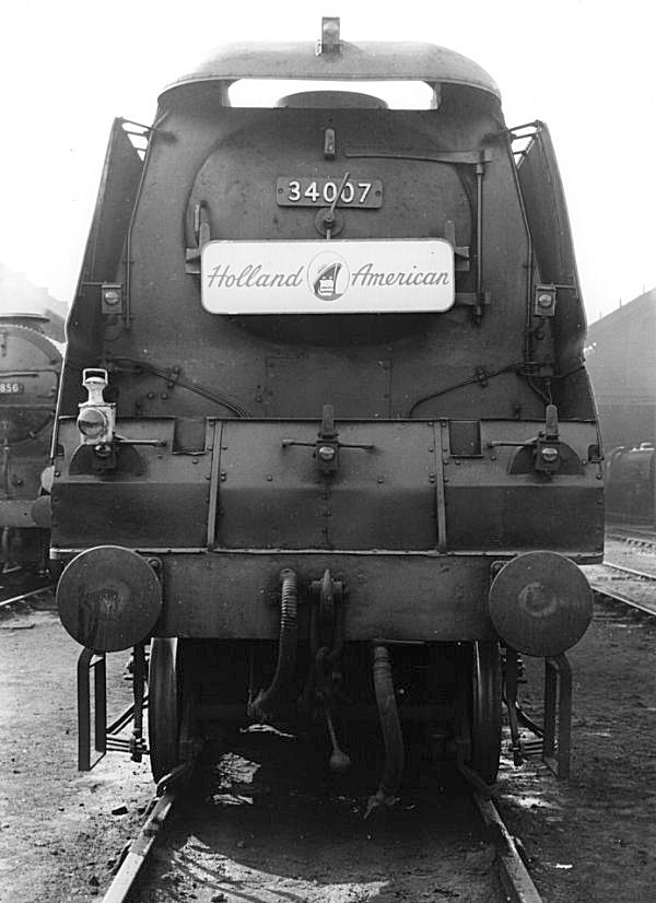 Wadebridge at Eastleigh shed on 9 May 1954 ready to leave for Southampton Docks to work the South American boat train to Waterloo. Photographer L Elsey.