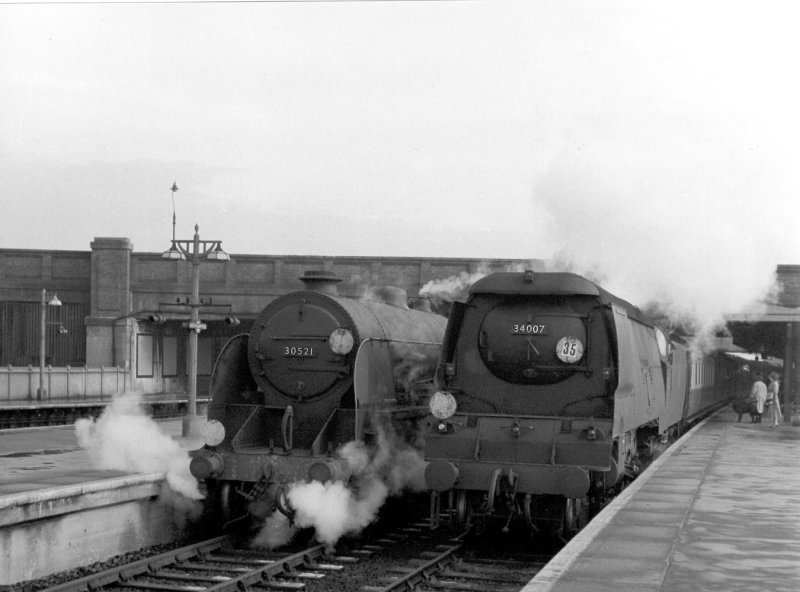 Wadebridge, with H15 Nº30521 in the adjacent platform road, at Southampton on 26th December 1956. We are grateful to the photographer, Paul Strong, for the use of this photograph.