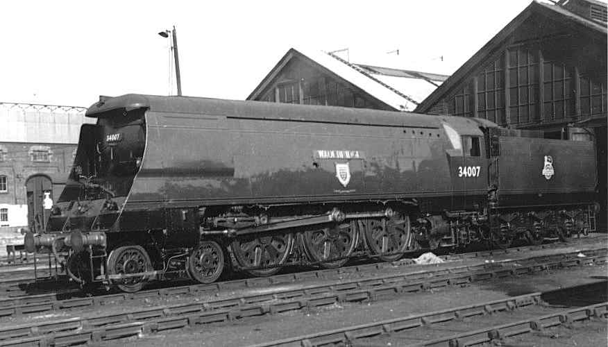 This photograph of Wadebridge on shed at Eastleigh during 1957 is reproduced with the permission of C M & J M Bentley.
