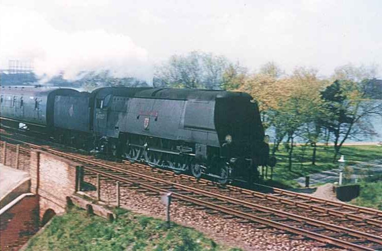 This photograph is reproduced by kind permission of the photographer, Peter Luxton.Wadebridge is passing Poole Park with an up train for Bournemouth during the late 1950's
