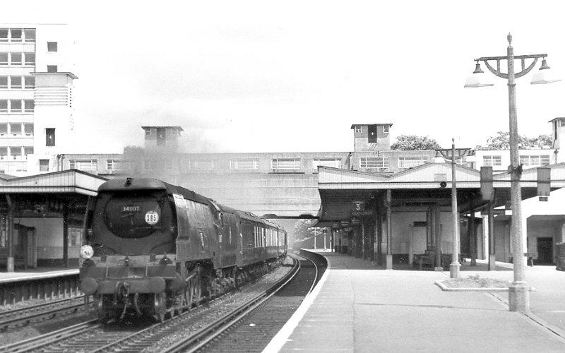 Wadebridge passing through Surbiton station on 9 June 1960 in charge of the Bournemouth Belle.We are grateful to the photographer, Bill Ashcroft, for the use of his photograph.