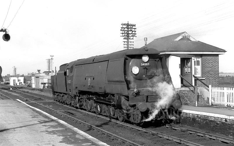 Wadebridge stands in Okehampton station on 28 March 1965 prior to departing as light engine to Meldon Quarry.We are grateful to the photographer, Michael Messenger, for the use of this photograph.