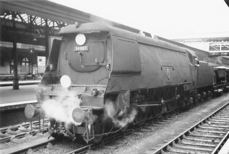 Wadebridge at Exeter St Davids on 8 May 1965. This photograph, which is of the same Meldon Ballast train as that depicted in Michael Messenger's photograph at Honiton, is from the P Chancellor collection, and we are grateful for being able to reproduce it.