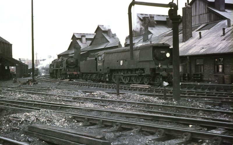 Wadebridge at Nine Elms shed during May 1965. This is reproduced from a Plym Valley Railway Co Ltd postcard and was photographed by Bernard Mills.