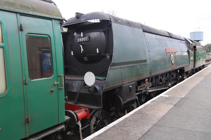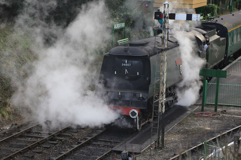 On her last run she left Alresford at 14:48 and arrived at Alton at 15:23. She started the return journey at 15:51 and completed the task at 16:22. After moving the coaches to a siding she returned to Ropley.